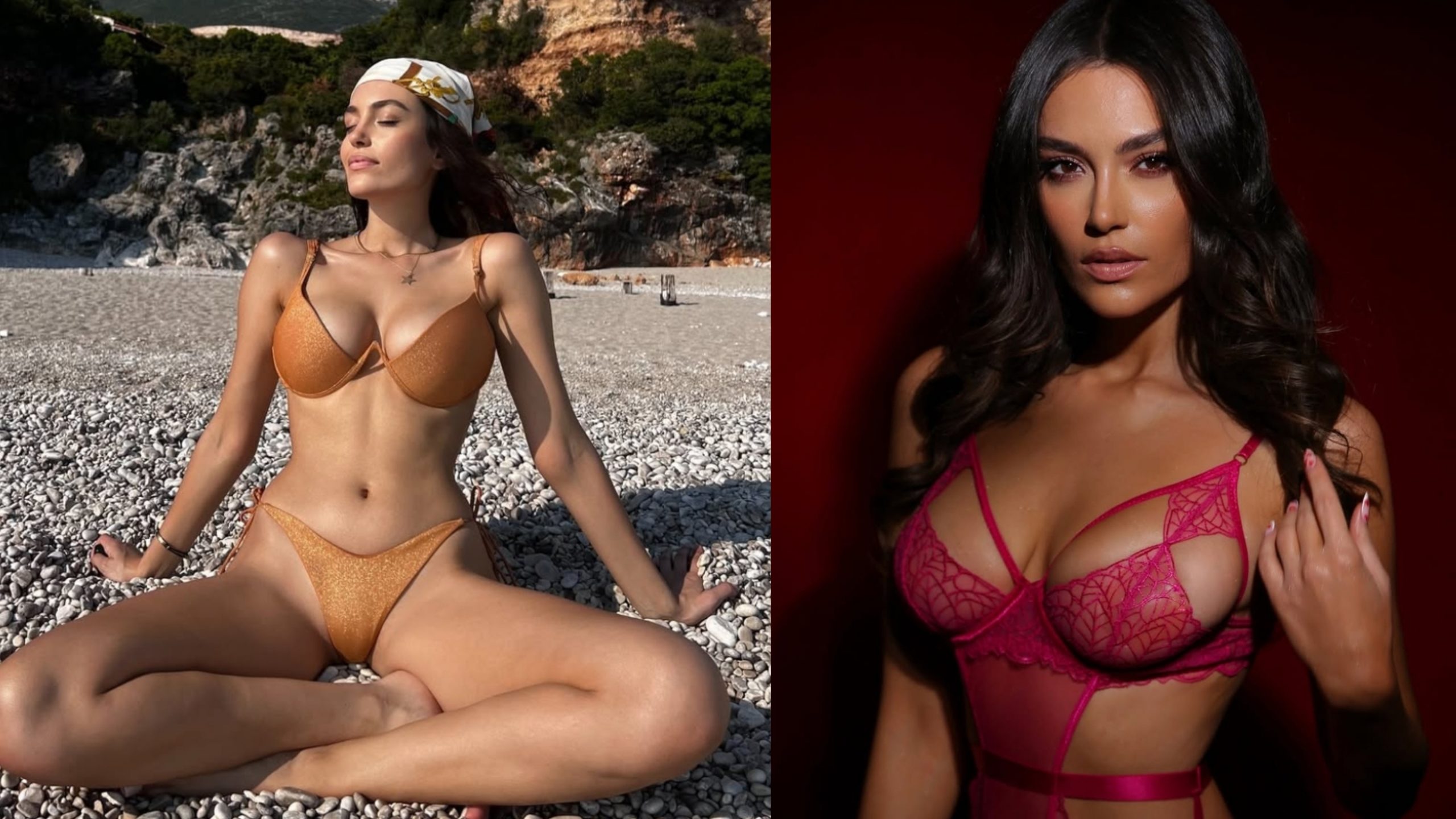 Bukuroshja brune shfaqet më provokuese se kurrë, e veshur me bikini të zeza transparente, duke vënë në pah linjat e saj të përsosura trupore dhe hijeshinë natyrale.