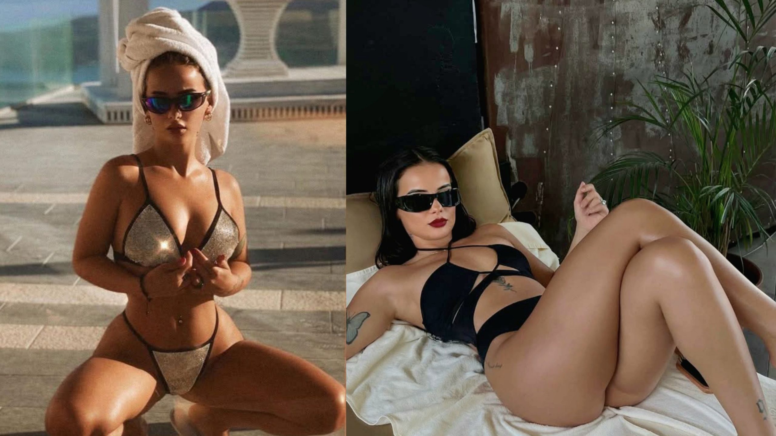 Rina tregoi linjat perfekte të trupit teksa shfaqetnne plazh me tanga minimaliste ne ngjyre te zeze.