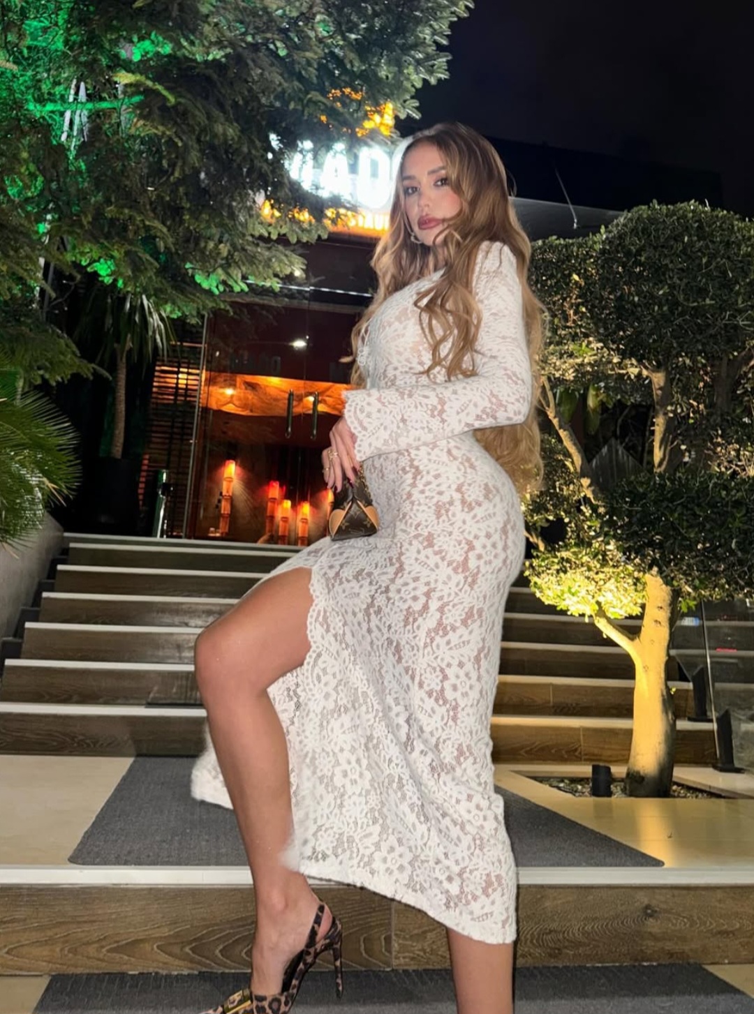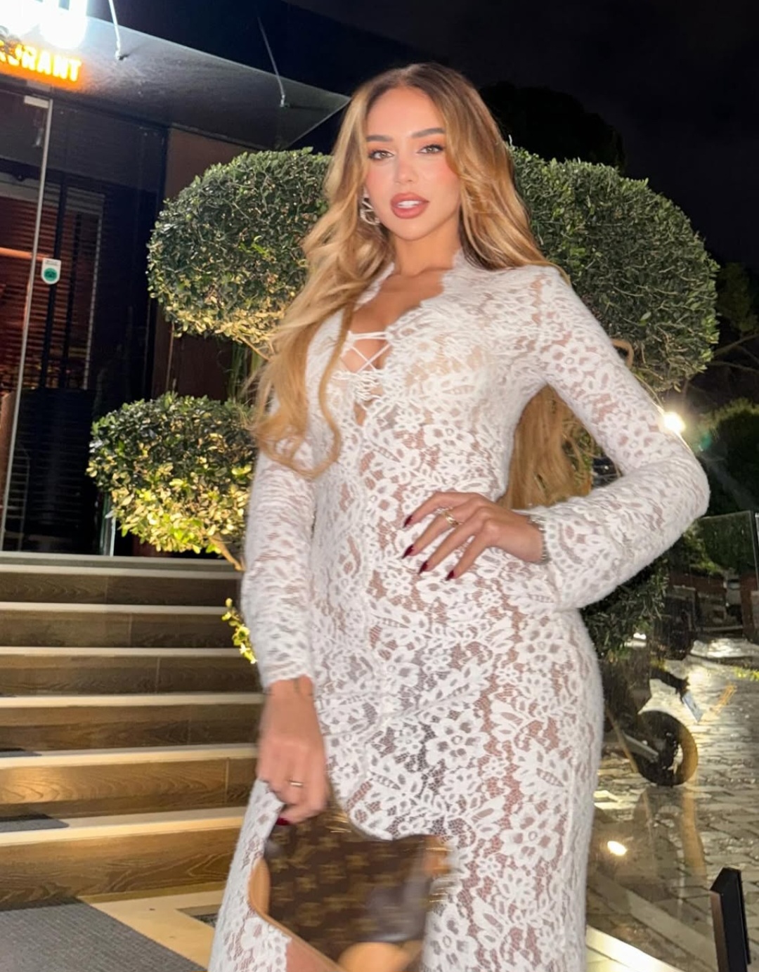 Ana është shumë e dashur për publikun shqiptar dhe shpesh herë përflitet për stilin e saj unik dhe paraqitjet provokuese. Fustani i bardhë me detaje dantelle ishte zgjedhja perfekte për një natë në kryeqytetin shqiptar, Tiranë, ku atmosfera është gjithmonë plot gjallëri dhe energji.