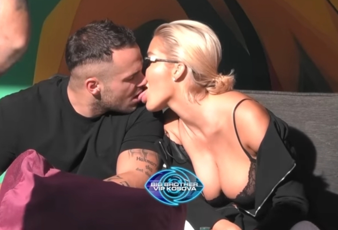 Dyshja ndodheshin në oborr, duke shijuar rrezet e diellit, kur momenti romantik ndodhi mes tyre. Puthja duket se vulosi afrimitetin e tyre, i cili ka nisur që në ditët e para të qëndrimit në shtëpi.