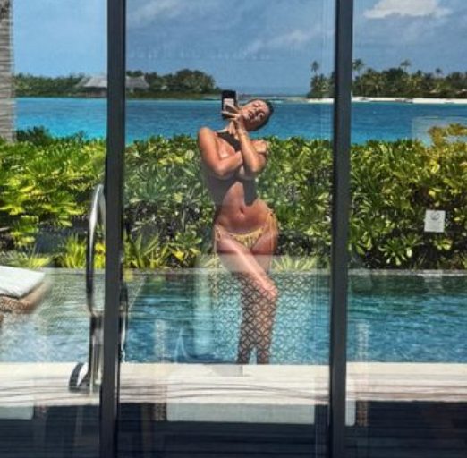 E nga pushimet e saj, ajo nuk ka nguruar të publikojë foto gjysmë nudo, për trazuar rrjetin, teksa në pah ve gjoksin e saj, të cilin mundohet ta mbulojë me duar.