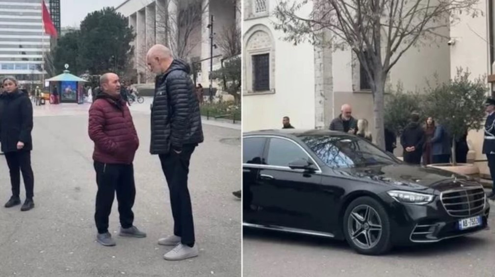Pas përfundimit të vizitës në bashkinë e Tiranës, kryeministri Edi Rama është ndaluar nga një qytetar i cili ndodhej afër godinës.