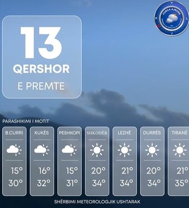 Ndërsa vija bregdetare dhe një pjesë e mirë e zonës së ulët do të mbeten nën mbizotërimin e intervaleve të gjata me diell edhe përgjatë pjesë së dytë të ditës.