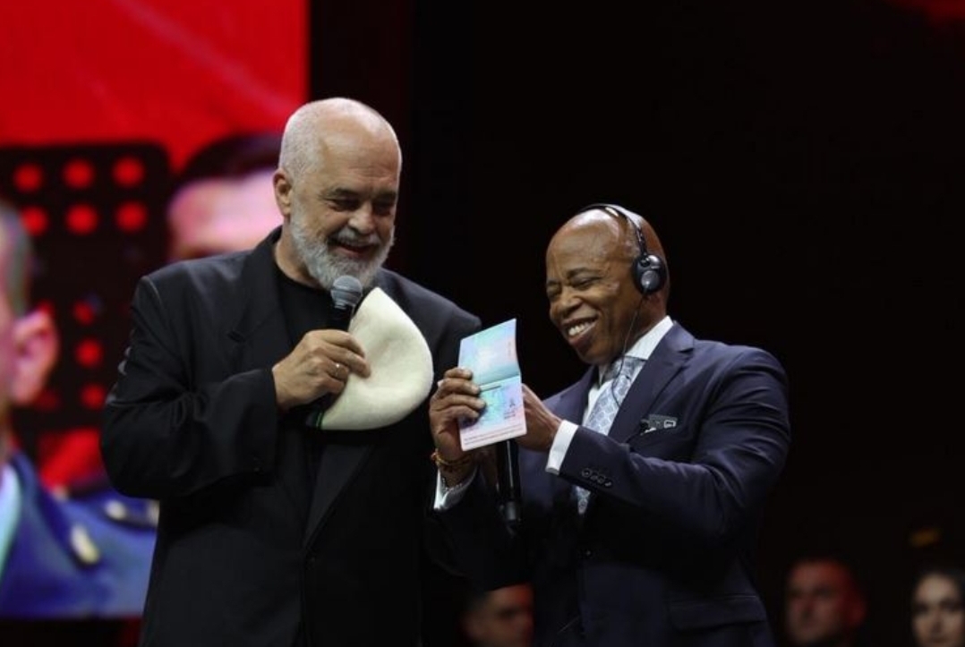 Kryeministri Edi Rama i dorëzoi Erik Adams, ish-kryebashkiakut të Nju Jorkut, pasaportën dhe kartën e identitetit të Republikës së Shqipërisë, gjatë zhvillimeve të Samitit IV të Diasporës.