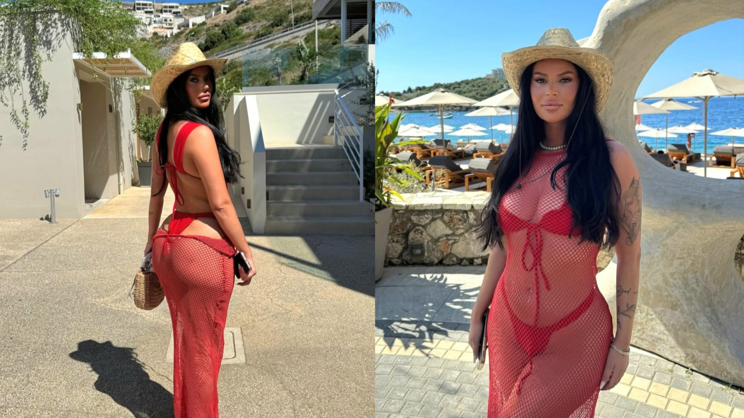 Me një veshje të tejdukshme, Santiana ekspozon linjat e saj trupore në top fromë.