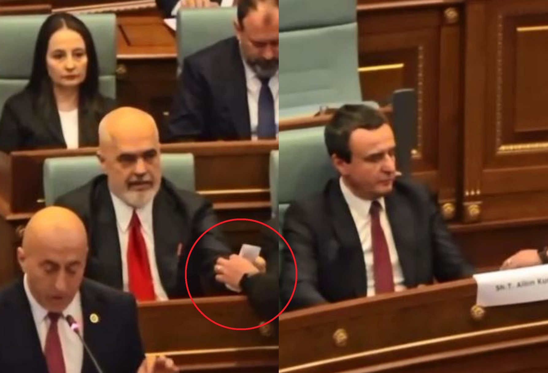 Në një kohë që në mbledhjen e përbashkët të dy Parlamenteve po fliste Ramush Haradinaj, është filmuar një moment që ka bërë kureshtarë të gjithë.