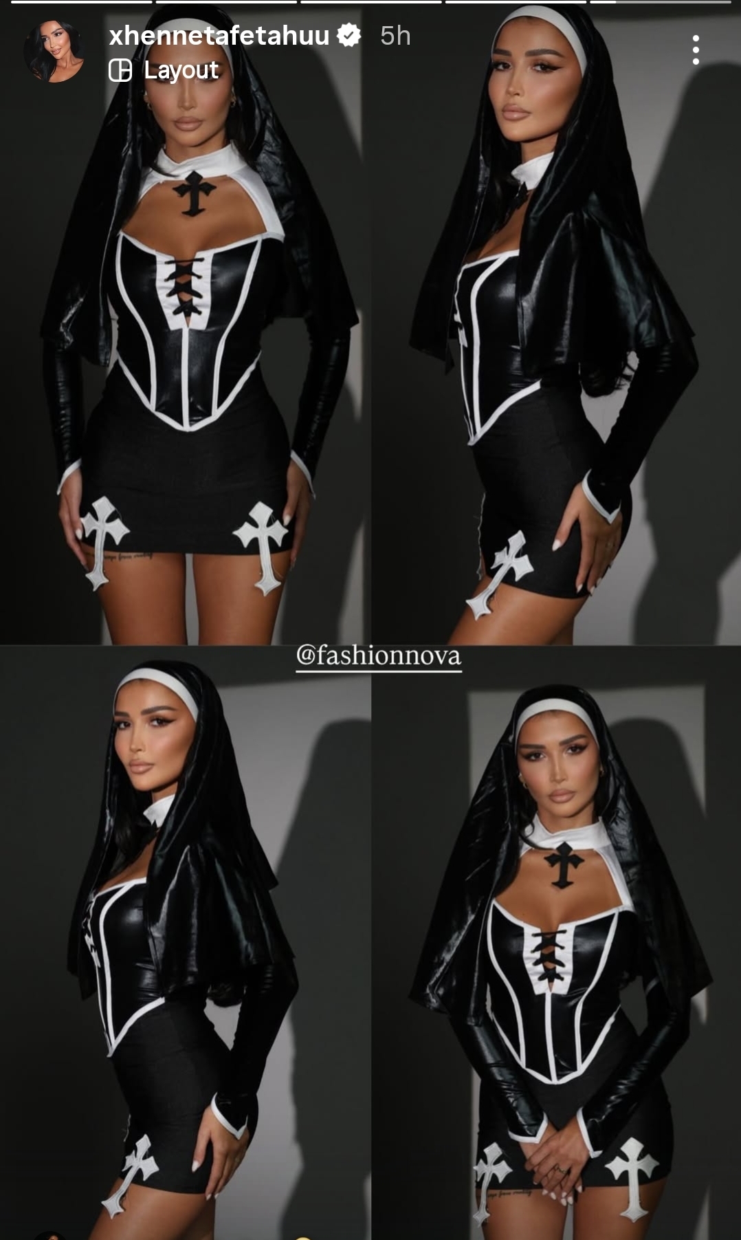 Në rrjetet e saj sociale, ajo ka publikuar disa fotografi ku shfaqet e veshur si një “murgeshë seksi”, duke tërhequr vëmendjen me dukjen dhe vetëbesimin e saj.