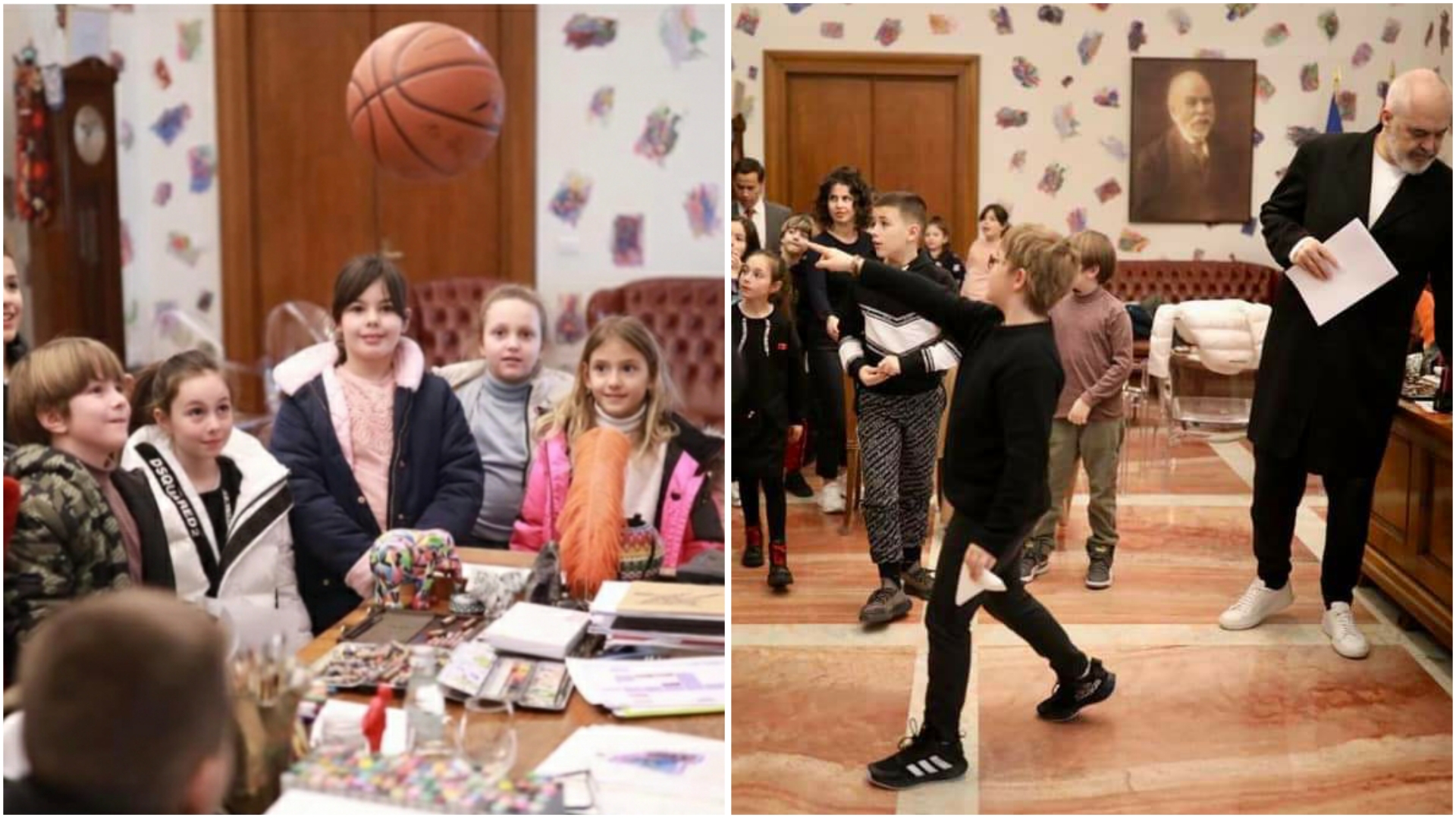 Rama ka ndarë disa foto nga takimi ku shihet se u ka treguar fëmijëve, ku mes tyre edhe djalit Zaho, kanë shkuar në ambientet e Kryeministrisë. Grupi i fëmijëve shihen të buzëqeshur, teksa kanë parë ambientet dhe kanë ngrënë disa ëmbëlsira. Gjithashtu Rama ka luajtur me fëmijët teksa në foto shihet me top basketbolli në dorë.