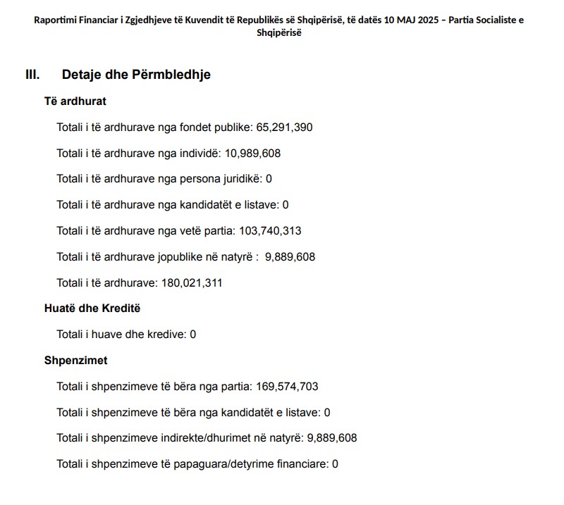 Nga tabelat e mëposhtme shihet sa kanë shpenzuar Partia Demokratike dhe Partia Socialiste gjatë kësaj fushate.