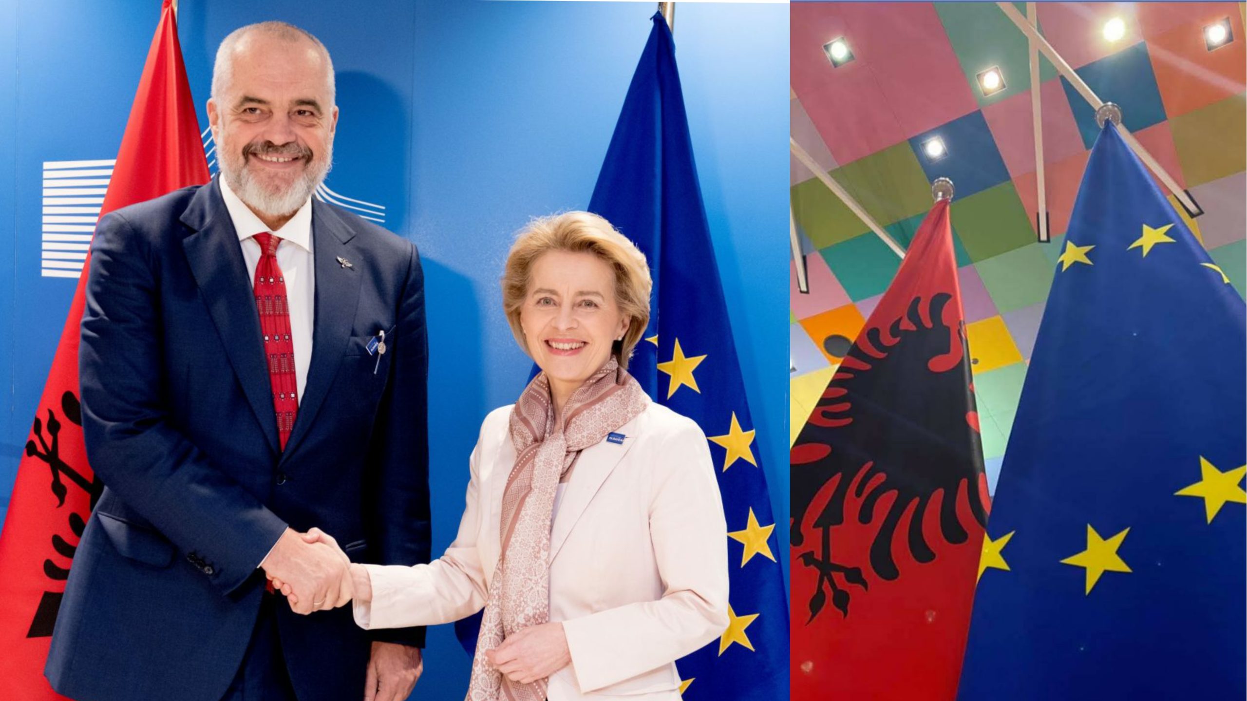 Presidentja e Këshillit Europian, Ursula von der Leyen e etiketoi si një “TAKIM SHUMË TË MIRË“, diskutimin me kryeministrin Edi Rama, ku u bisedua rreth progresit në rrugën e anëtarësimit të Shqiperise në BE dhe “planin e ri” për fuqizimin e Ballkanit Perëndimor.